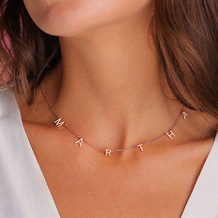 18 Karat Rosévergoldung personalisierte 1-10 Anfangsbuchstaben Anhänger Namenskette für Sie