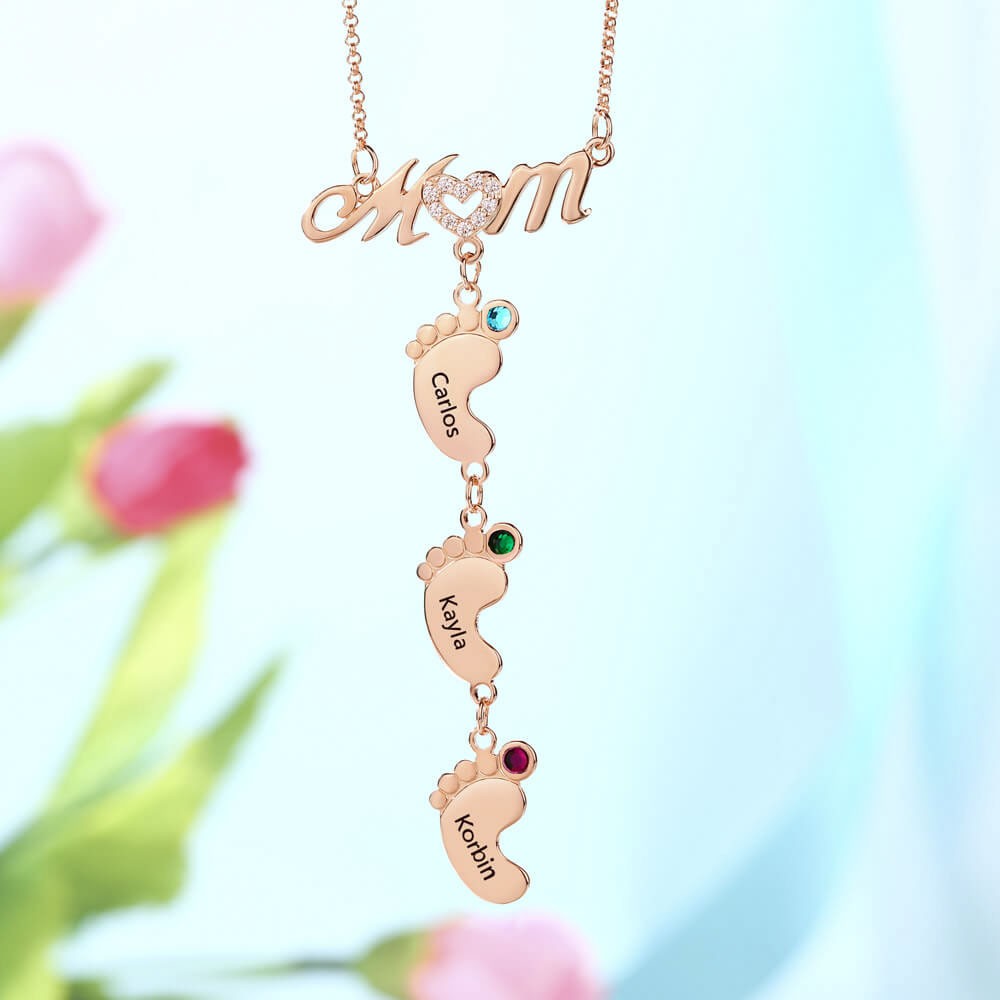 This necklace is a great choice for a mother's gift on any holiday. This foot necklace can be used to celebrate the birth of a child, and can also be used to give mothers to express their endless love for their children. It can customize 1-10 names and birthstones, each gemstone can represent the birthday of each child.