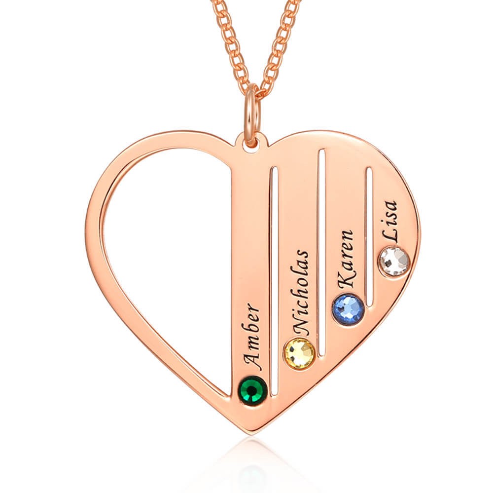 18 Karat Rosévergoldung Personalisierte Familiengravur 1-7 Geburtssteine ​​und Namenskette