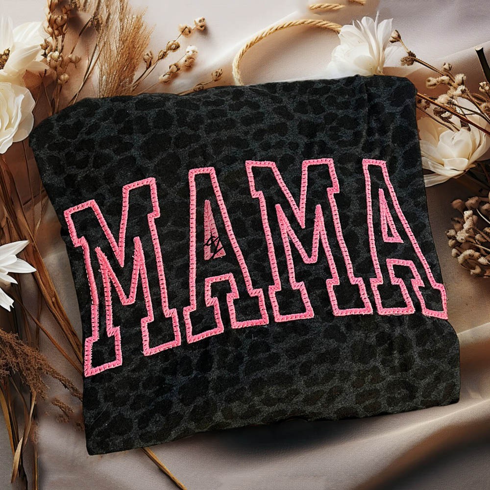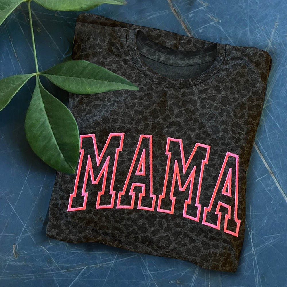 Benutzerdefinierte Gestickten Leopard Mama Shirt für Muttertag Geschenk