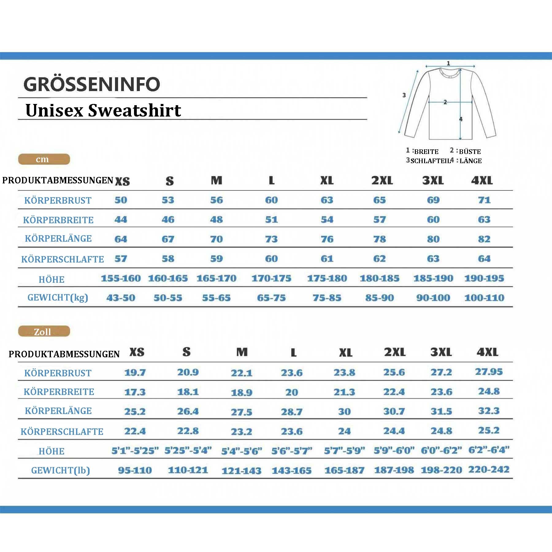 Sie sind super weich und bequem. Die Sweatshirts sind mittelschwer und perfekt für den Alltag geeignet. Dies ist eine Unisex-Passform, also eher locker als tailliert. Wir empfehlen dringend, Ihr aktuelles Sweatshirt zu messen und mit unserer Größentabelle zu vergleichen, um das beste Ergebnis zu erzielen. Wir akzeptieren keine Rückgabe oder Umtausch gemäß unserer Geschäftspolitik.