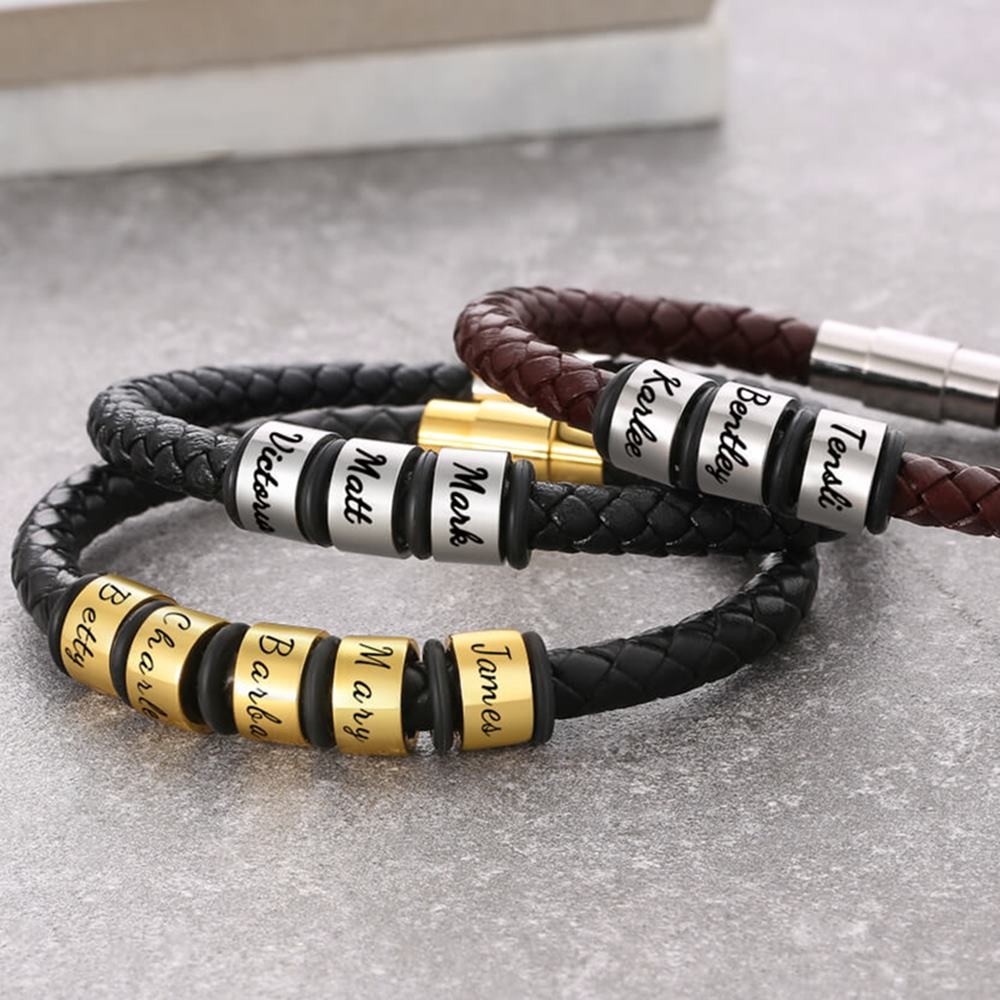 Benutzerdefinierte 1-10 Perlen Braid Name schwarzes Lederarmband