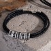 Personalisiertes schwarzes Lederarmband mit kleinen silbernen Perlen,Weihnachts-Geburtstagsgeschenk für Vater,Ehemann,Freund