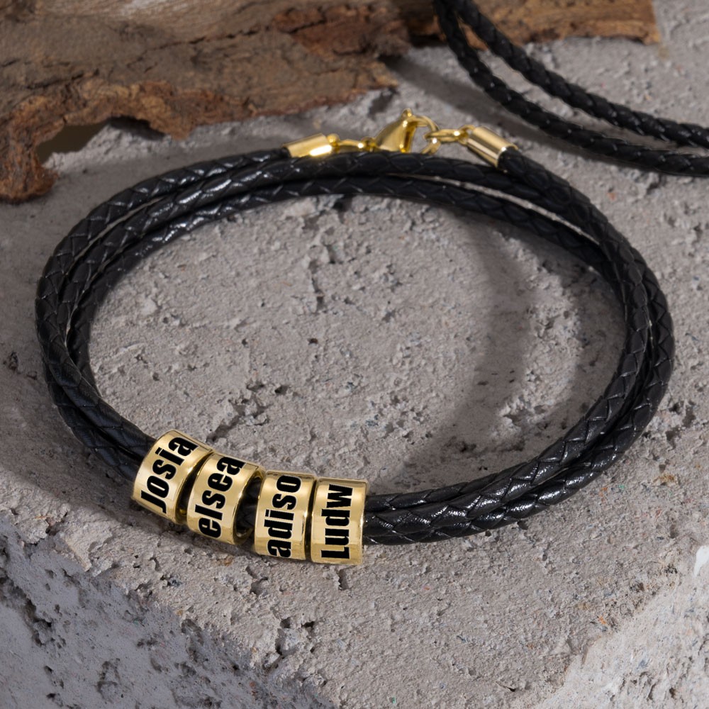 Personalisiertes braunes Lederarmband mit kleinen goldenen Namensperlen, Weihnachtsgeburtstagsgeschenk für Papa, Ehemann