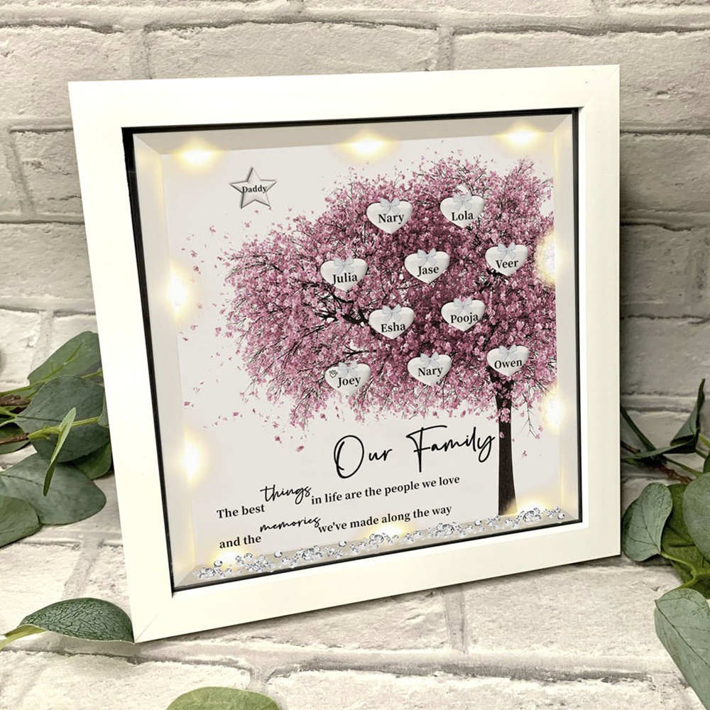 This wonderful framed family tree that is printed and engraved with custom family names makes a great gift or a perfect addition to any room.