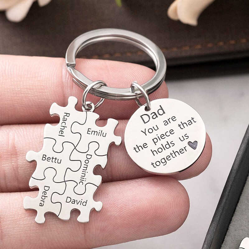 Vatertagsgeschenk Personalisierte Papa Puzzle Schlüsselanhänger Gravur 1-20 Namen