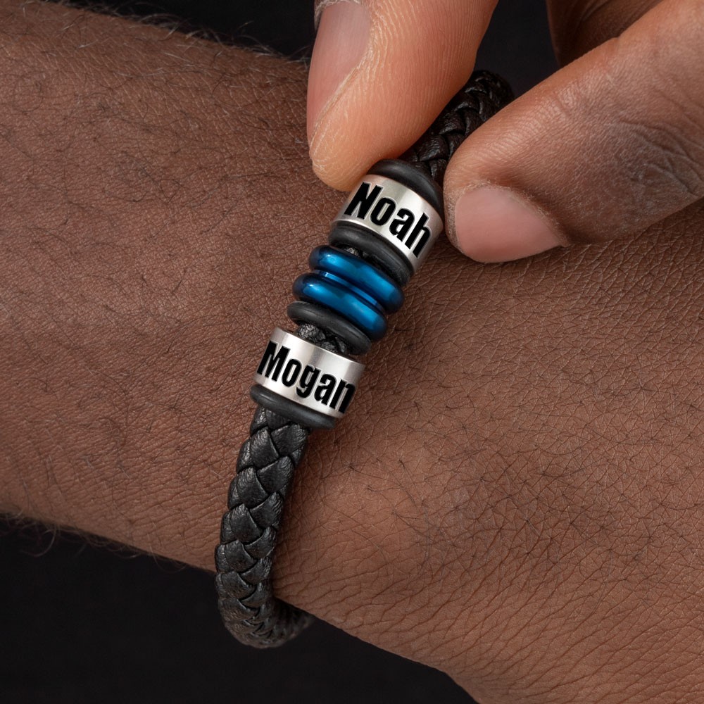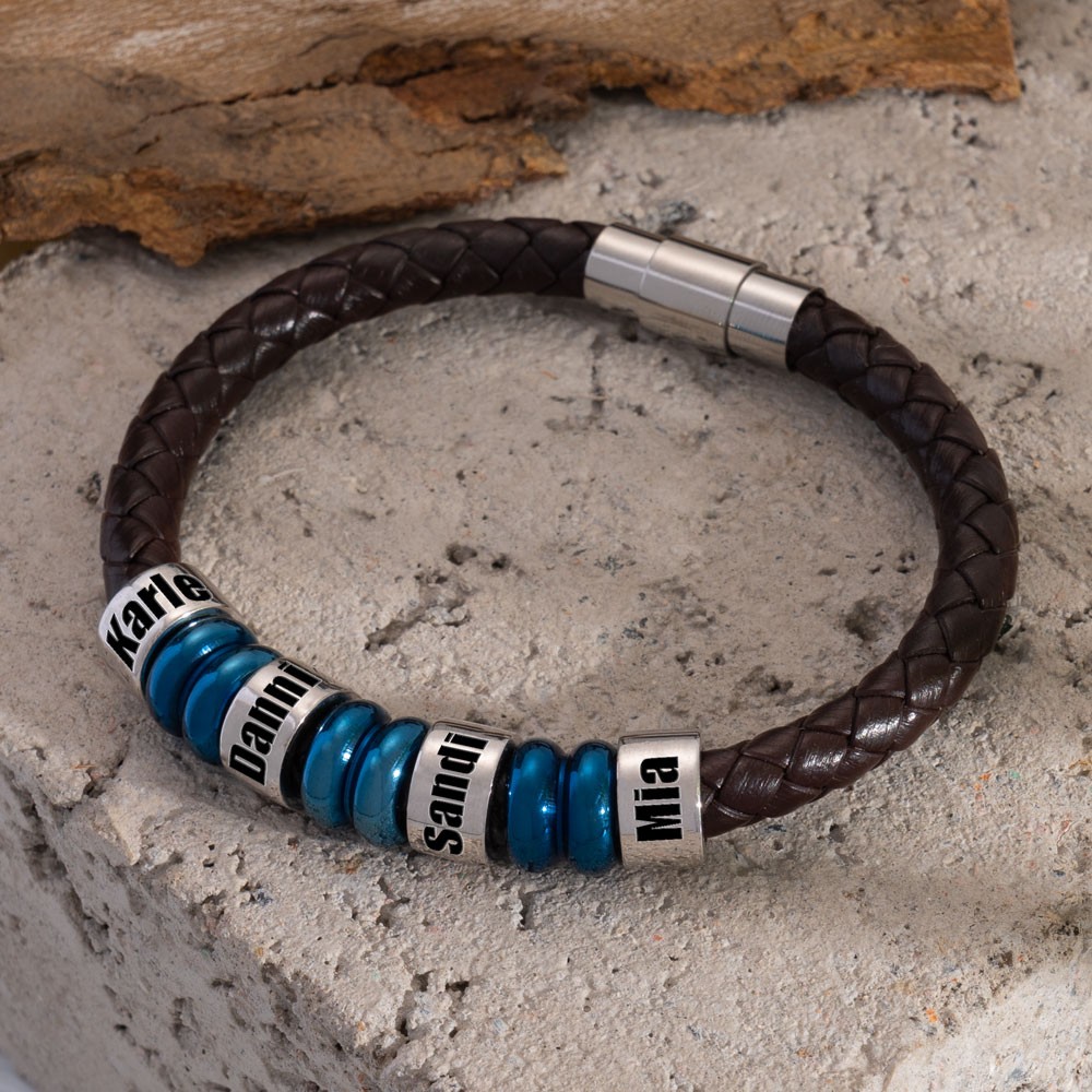 Herrenarmband mit personalisierten Perlen mit Namensgravur, Weihnachts- und Geburtstagsgeschenk für Vater, Ehemann, Freund