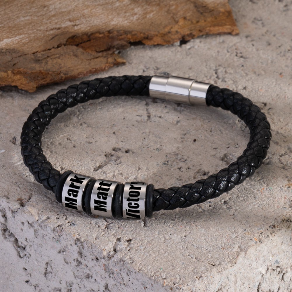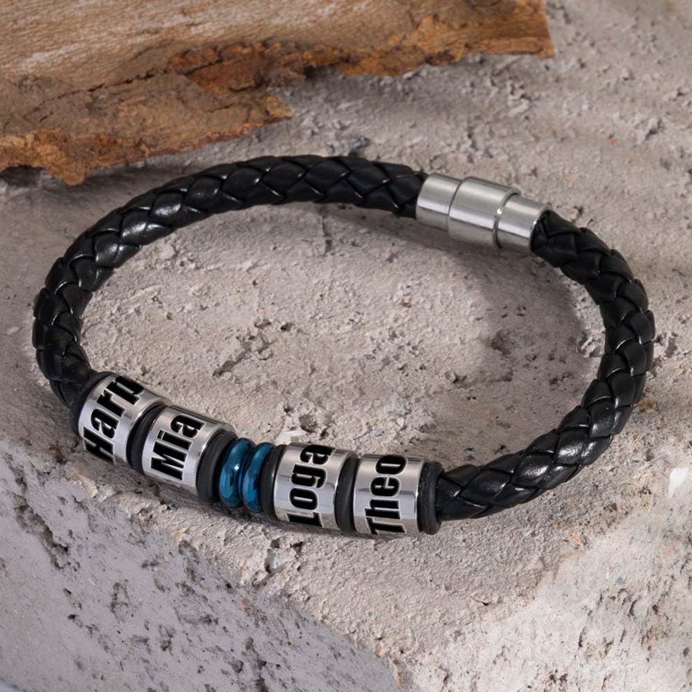 Herrenarmband mit personalisierten Perlen mit Namensgravur, Weihnachts- und Geburtstagsgeschenk für Vater, Ehemann, Freund