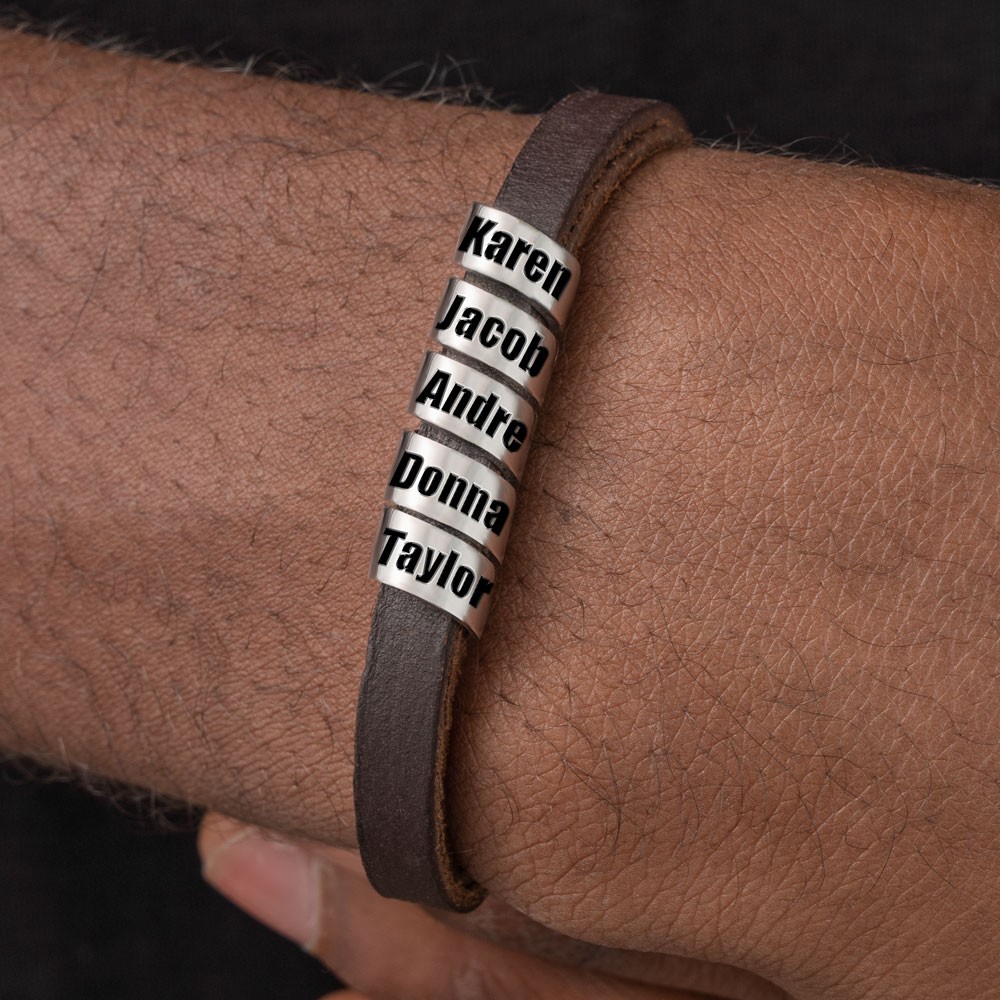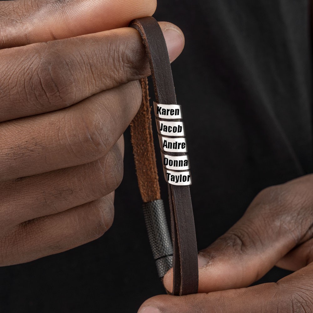 Herren-Lederarmband mit personalisierten Perlen mit Gravur, Weihnachtsgeschenk, Geburtstagsgeschenk für Vater, Ehemann, Freund