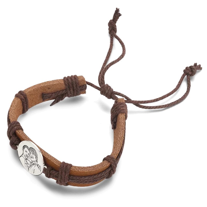 Herren Rundarmband mit Fotogravur Braunes Lederarmband
