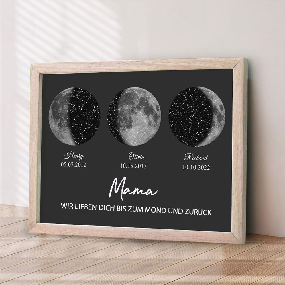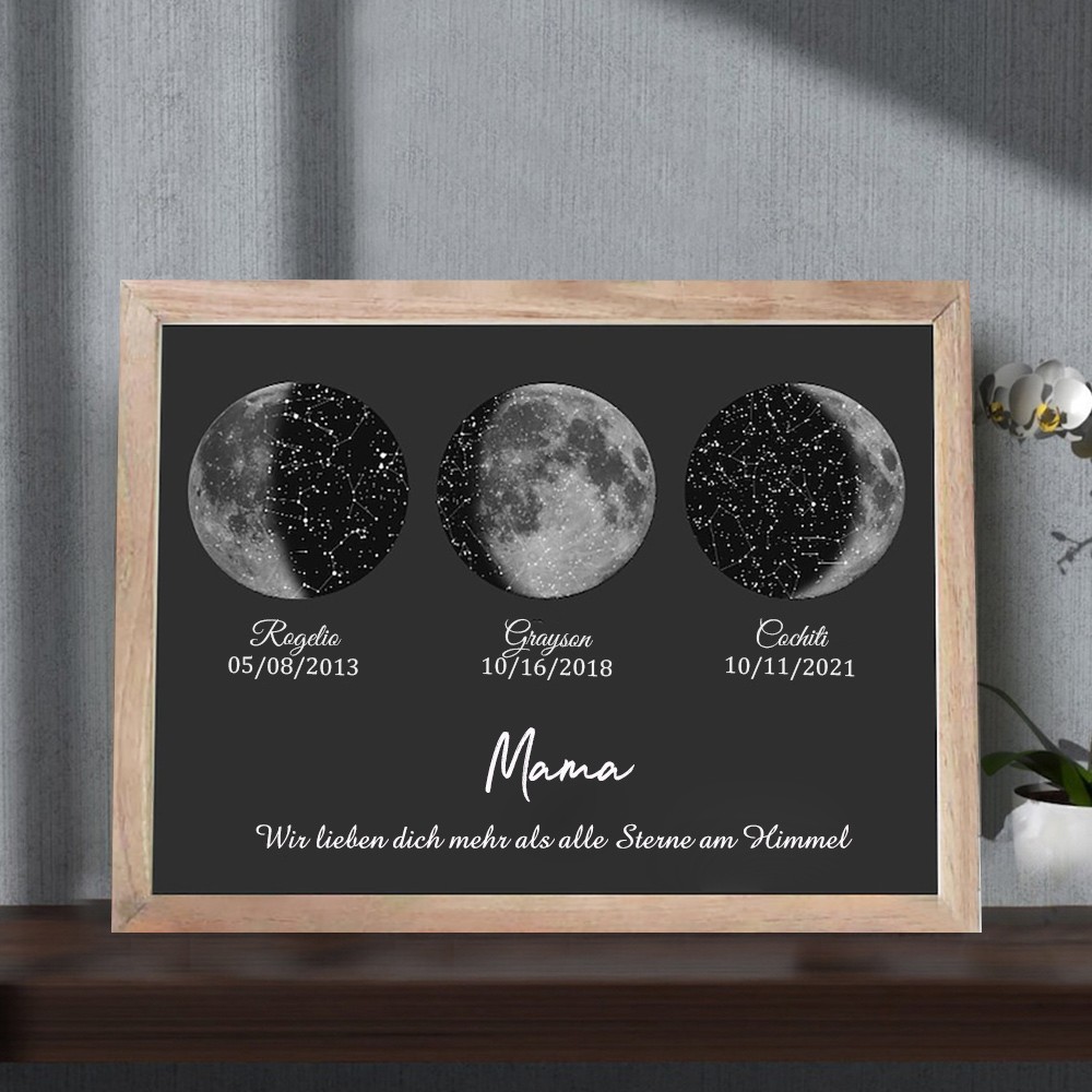 Personalisierte Mama Mondphase drucken Rahmen mit Kindernamen für Muttertag Geschenke