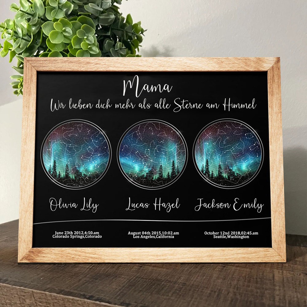 Personalisierte Sternkarte von Datum Nachthimmel Konstellation Holz Zeichen für Mama Muttertagsgeschenk