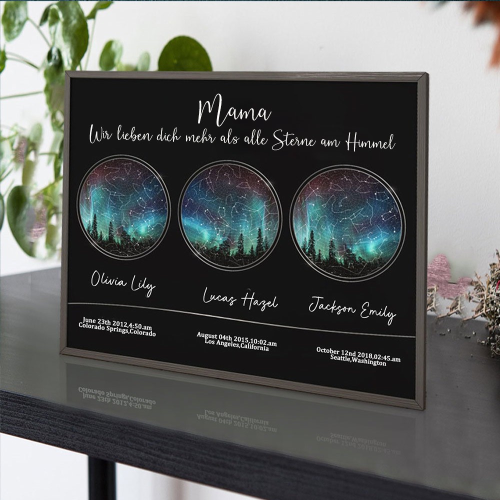 Bestimmte Sternenkarten nach Datum und Ort, einzigartiges Geschenk für Valentinstag, Muttertag, Vatertag, Weihnachten, Jahrestag oder jede andere Gelegenheit.