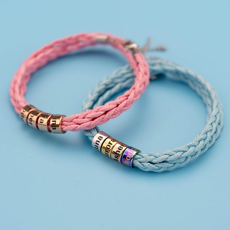 Personalisierte 6-Farben-Namensbänder mit eingraviertem Namen und 1-10 Perlen