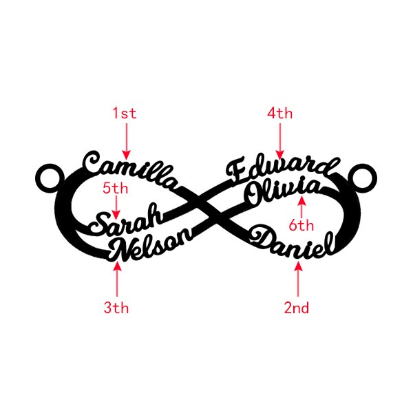 Personalisierte 6 Namen Infinity Symbol Halskette