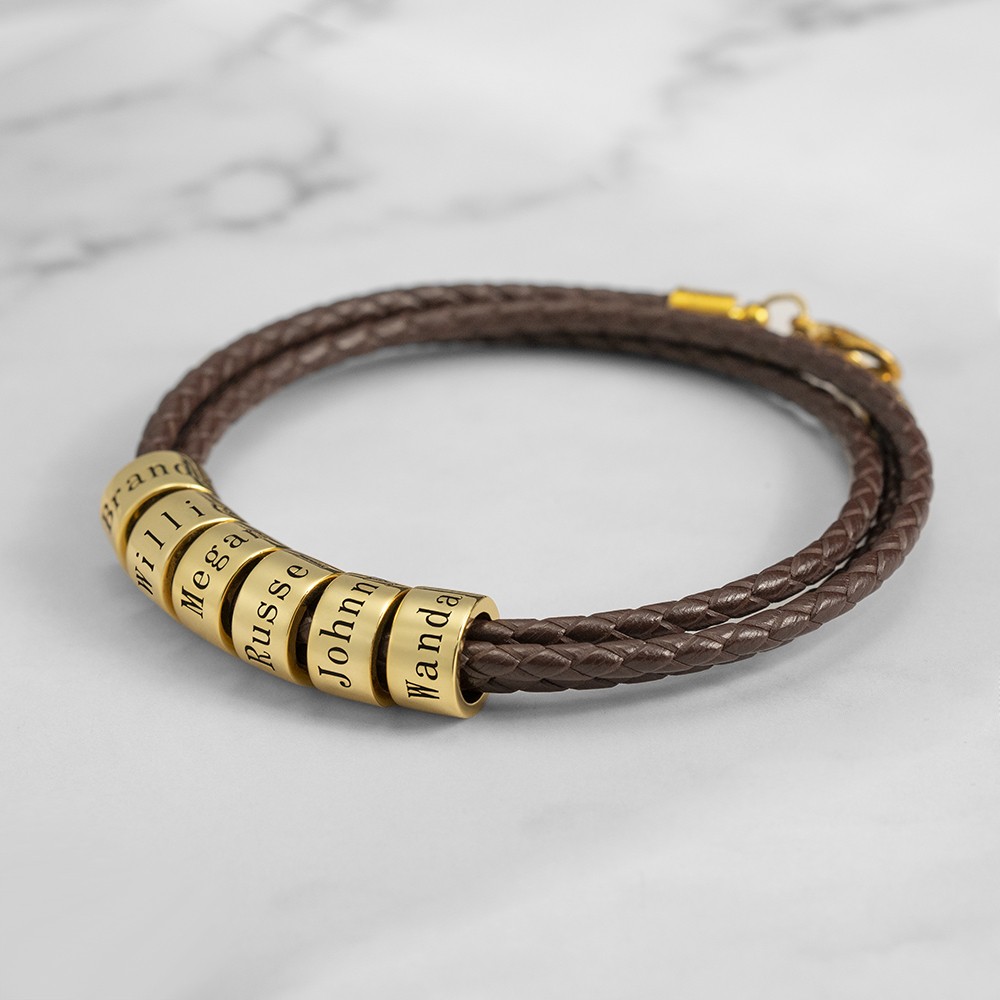 Personalisierte Perlen Gravur Name Lederarmbänder mit 1-10 Perlen Geschenke für Ihn