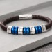 Stylish details give the Men Braided Leather Bracelet with Small Custom Beads in Silver plenty of visual appeal. With a supple band of braided black leather in your this custom bracelet is personalized with up to 10 beads, each with an inscription of its own. A sturdy clasp ensures that the fit is comfortable and secure. This bracelet is made with Sterling Silver. It features: