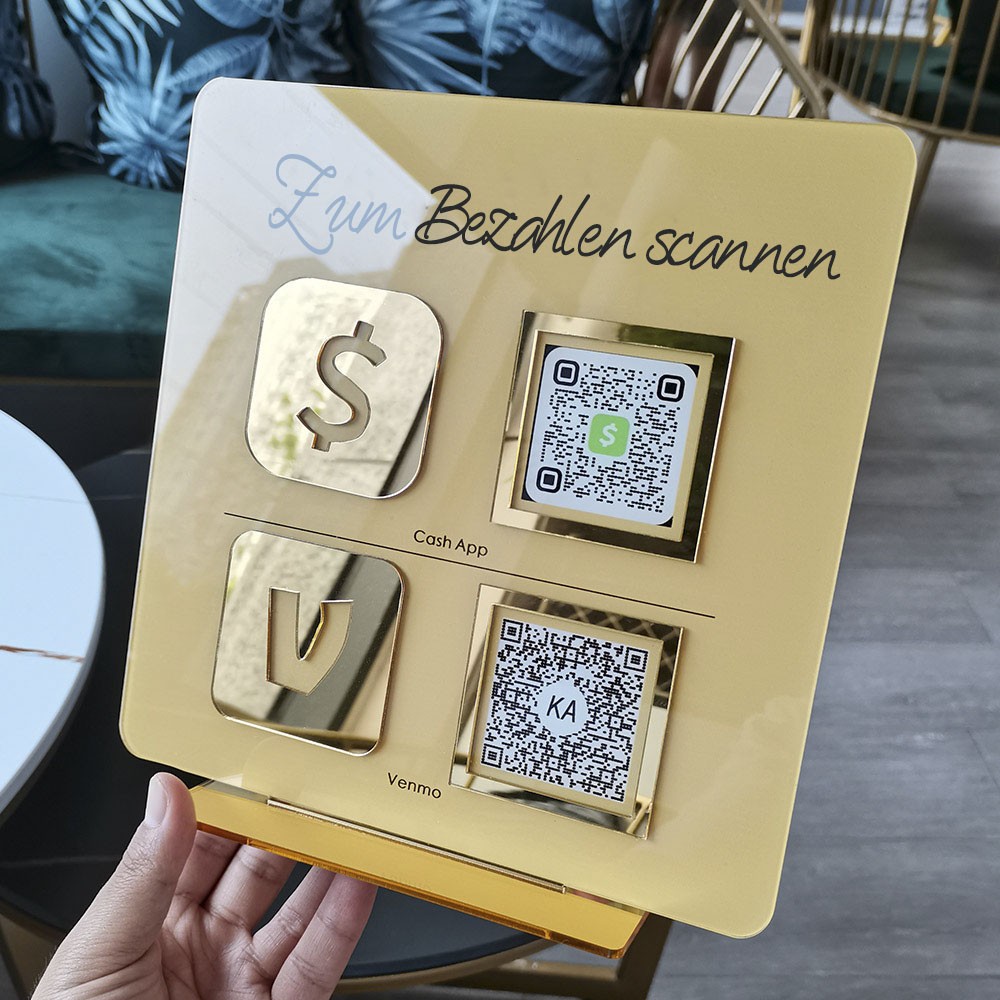 A pretty payment method advertiser to place on your reception desk or counter top or to use at marketplaces or pop up stores.