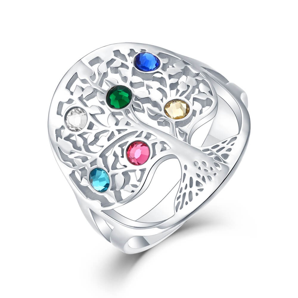 Personalisierter Stammbaumring mit 1-6 Geburtssteinen