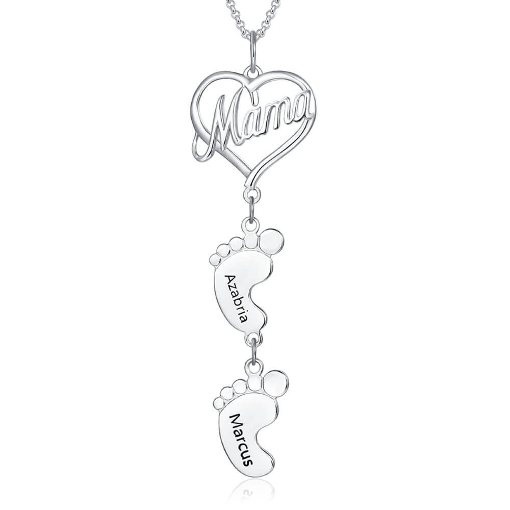 Silberne personalisierte Love MaMa Heart 1-10 Baby Feet Charms Namenskette