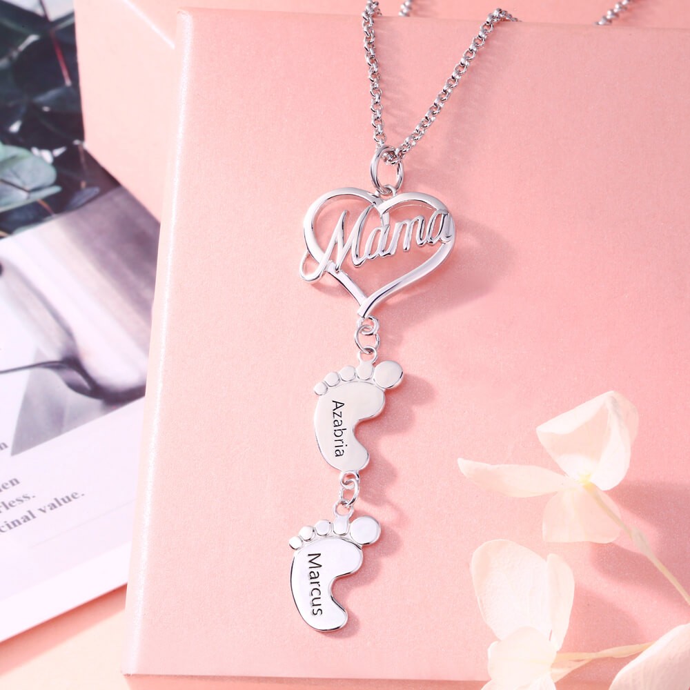 Your mom will alway be in your heart, show her that she is in yours as well. This Mama Heart Pendant with Baby Feet will bring a huge smile to any Mother's face, she will especially love the custom engraved baby feet. This is the gift that can't go wrong.