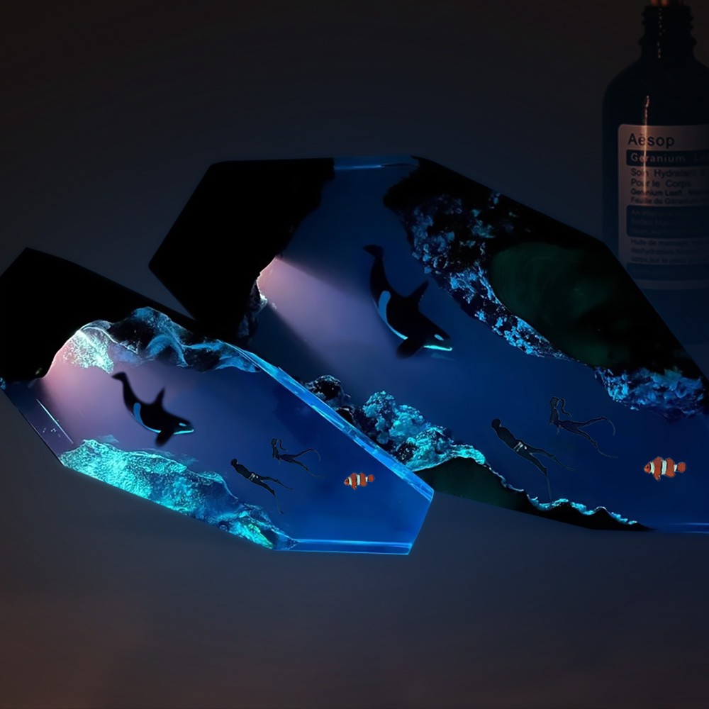 Harz Ozean Holz Lampe Buckelwal Nemo und Paar Taucher Home Decor Weihnachtsgeschenk