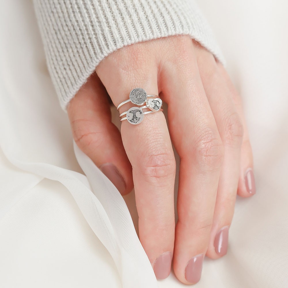 S925 Sterling Silber Custom Pfotenabdruck Ring | Personalisierter Fingerabdruck | Haustier-Liebhaber-Geschenk