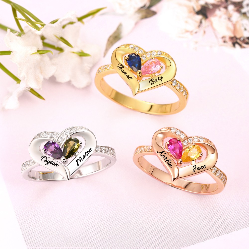 S925 Sterling Silber personalisierter Geburtsstein Paar 2 Namen Ring für Sie
