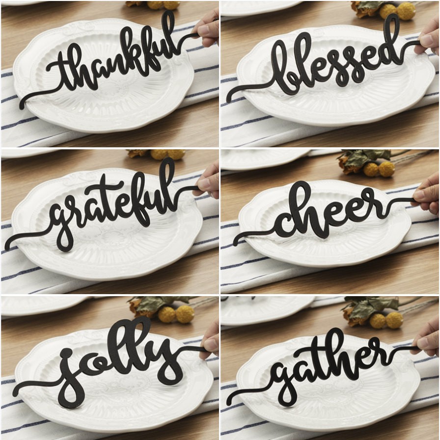 Set mit 6 Thanksgiving-Platzkarten für Esstischdekor-Wörter-Zeichen