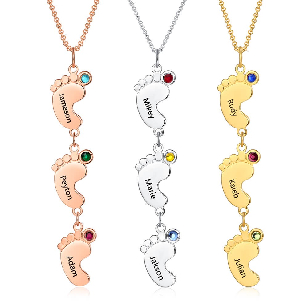 You can customize this Vertical Baby Feet Necklace with Birthstones as you wish: