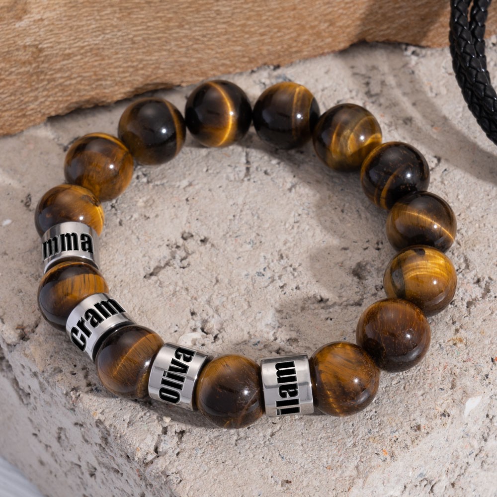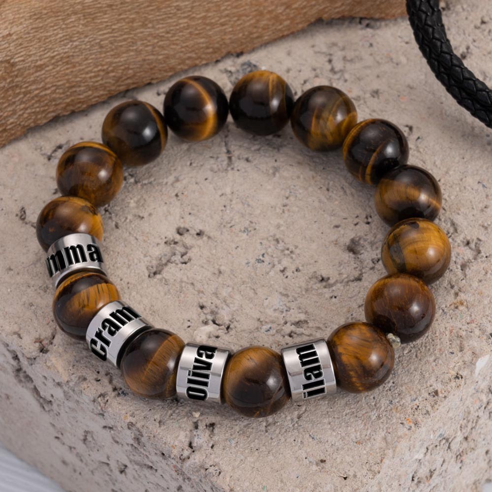 Tigerauge-Heilarmband mit individuellen Namensperlen, Weihnachts- und Geburtstagsgeschenk für Vater, Ehemann, Freund